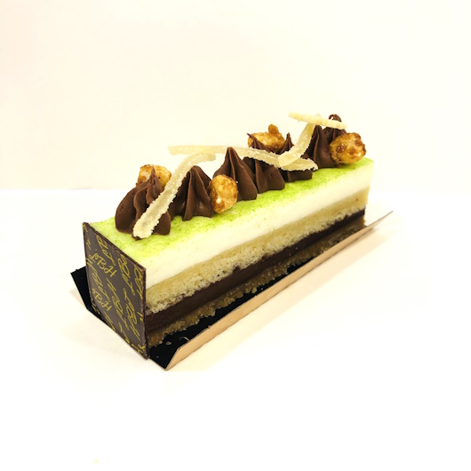 Sablé noisettes, gelée gingembre, mousse yuzu et biscuit aux amandes